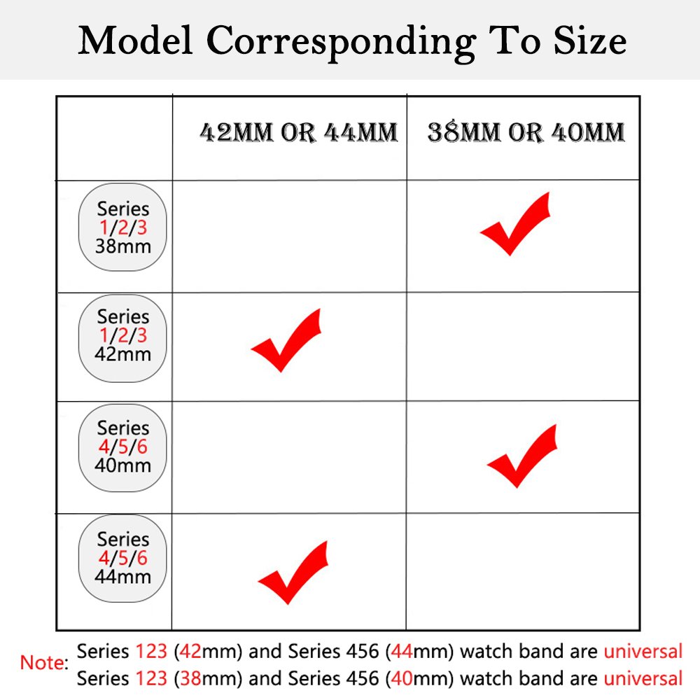 38/40mm S/M, 38/40mm M/L, 42/44mm S/M, 42/44mm M/L