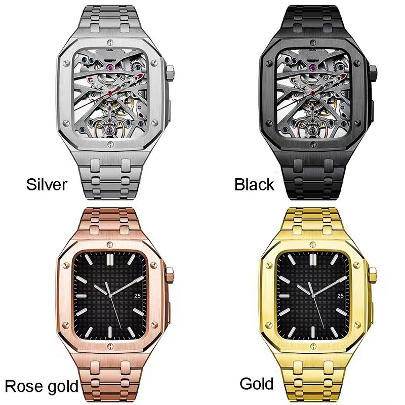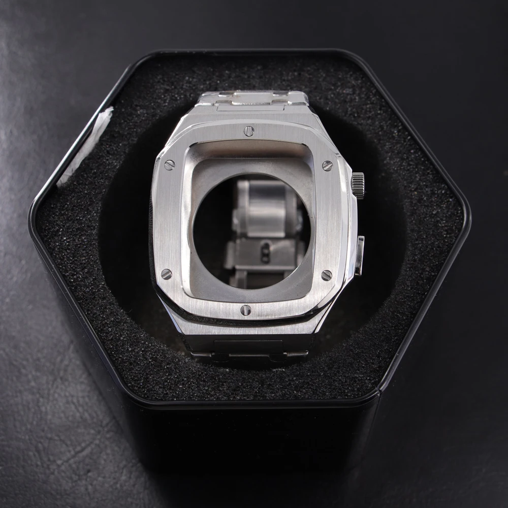 Modification Kit Metal Bezel Case for Apple Watch Band 44mm Stainless Steel Strap for IWatch Series 6 5 4 3 SE
